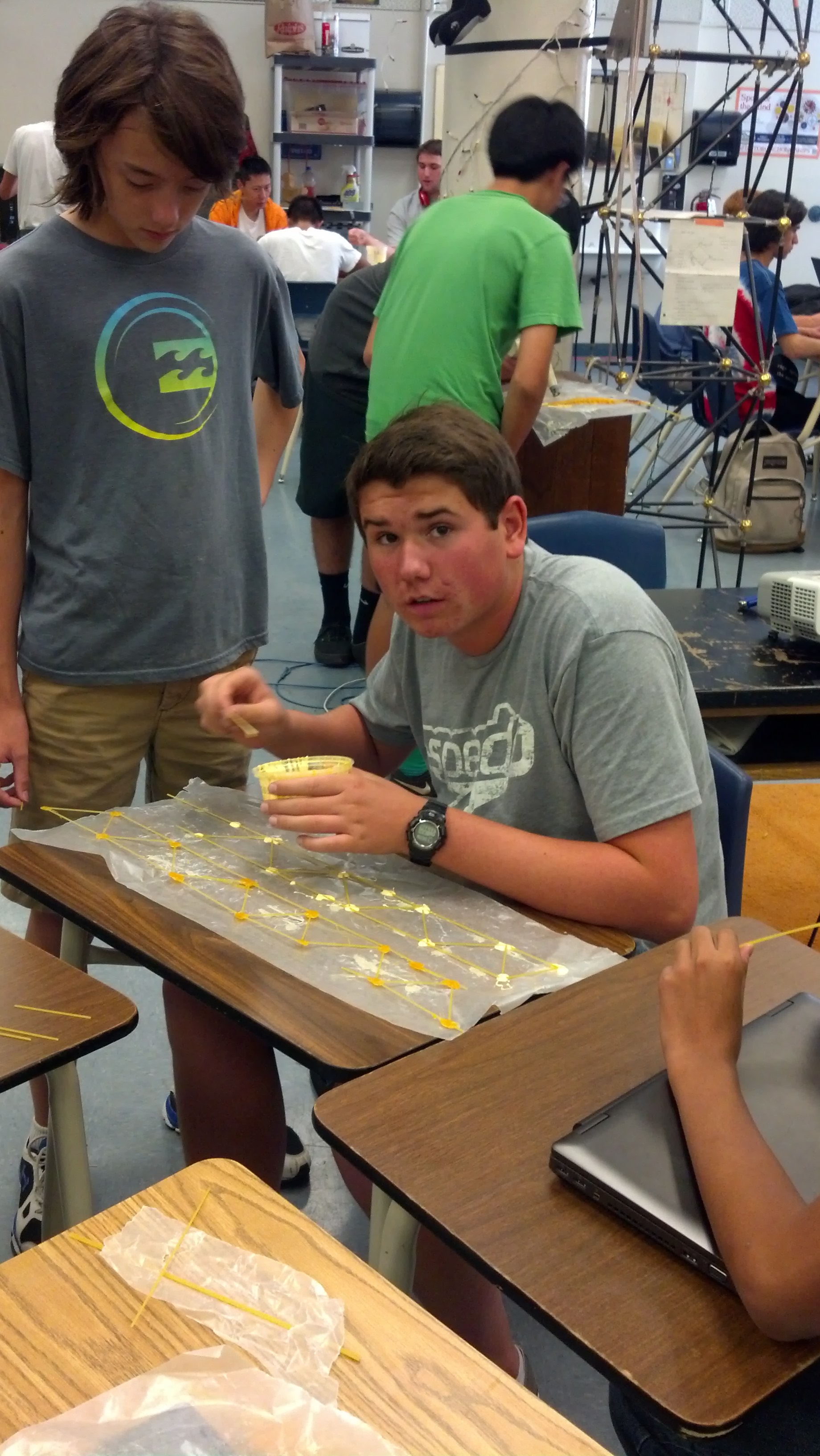 8/21/15 FridayToday, we learned of last year's invention challenge. The "veterans" shown a device to control a pool ball a certain distance and velocity. It was pretty cool! They shown how they used google sketch up and how important is was to document important files and videos. They definitely told me the impotance of keeping up my website. For the rest of the day however, we worked on our spagetti bridge. We created 2 triangular bridges.