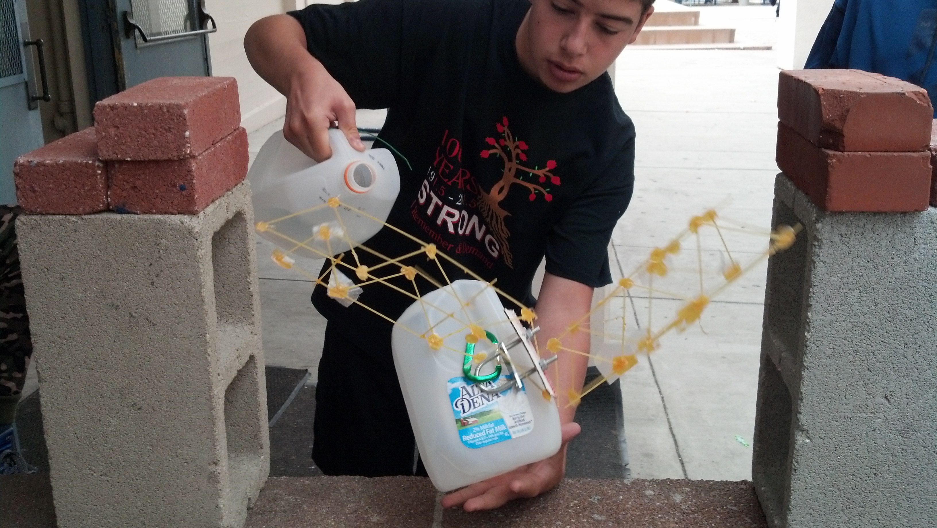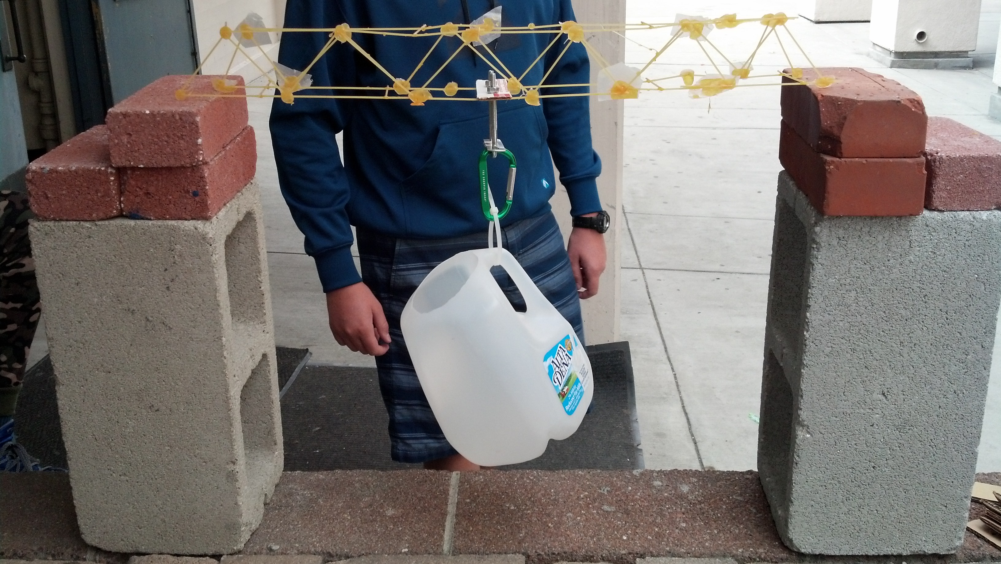 We built more bridges for our Wednesday challege. Our newest additon was a bunch of spagetti glued together. I like to call it the strip. The rest of the day was just testing our bridges. We broke 2 of our original ones, and we documented some of our former brideges. We have 2 more bridges left to go before our final one.