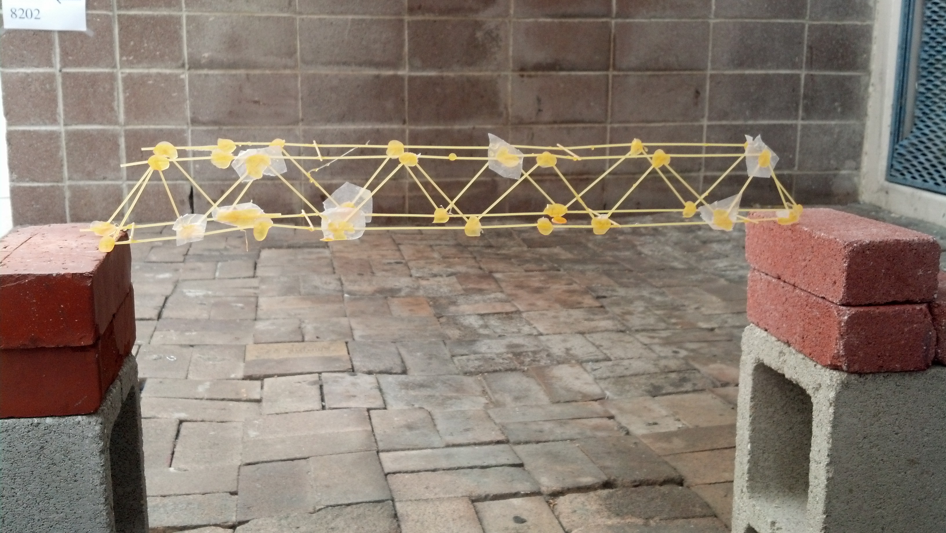 We built more bridges for our Wednesday challege. Our newest additon was a bunch of spagetti glued together. I like to call it the strip. The rest of the day was just testing our bridges. We broke 2 of our original ones, and we documented some of our former brideges. We have 2 more bridges left to go before our final one.
