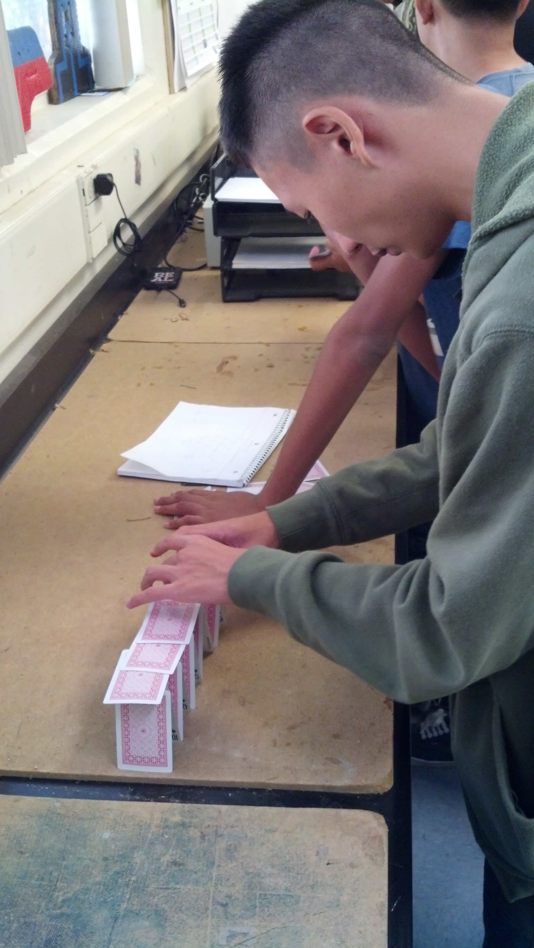 We did our Wednesday Challenge!!!! WOO HOO! Today, Dr. Neat made us design a card house. We didn't win, and